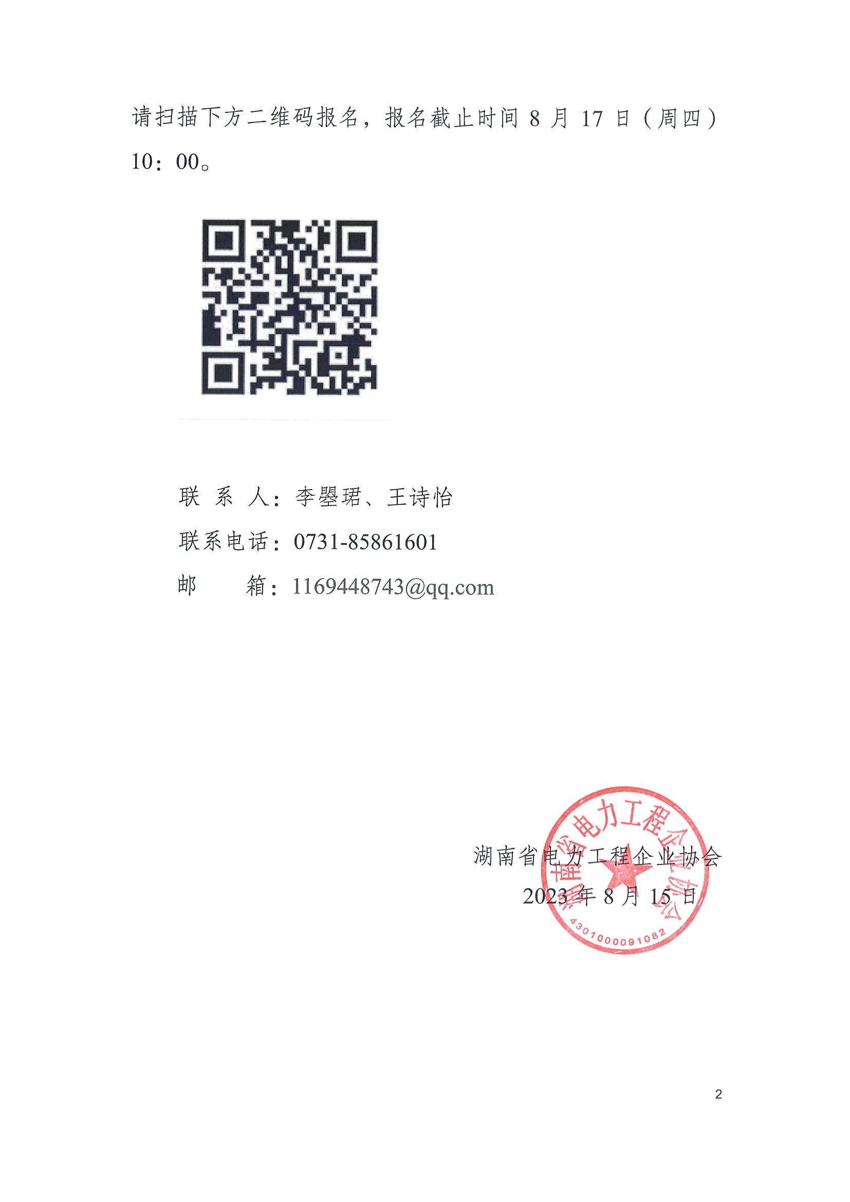 本次培训不收取费用,因场地和名额有限,先报先得。请扫描下方二维码报名,报名截止时间8月17日(周四)10:00。 邮 箱:1169448743@qq.com